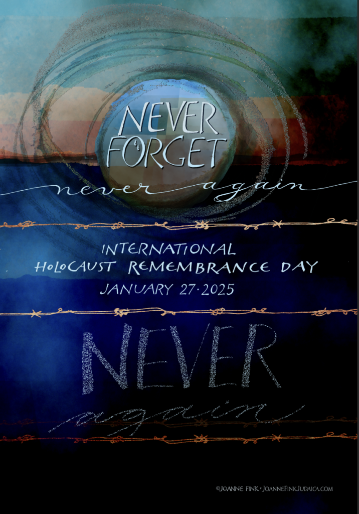 I created this design to commemorate International Holocaust Remembrance Day, observed annually on January 27th. This day marks the anniversary of the liberation of Auschwitz-Birkenau in 1945 and honors the six million Jews and millions of others who were victims of the Holocaust. It is a time to promote Holocaust education, remember the victims, and reaffirm our commitment to fighting antisemitism, racism, and hatred to ensure that “Never Again” becomes a reality.