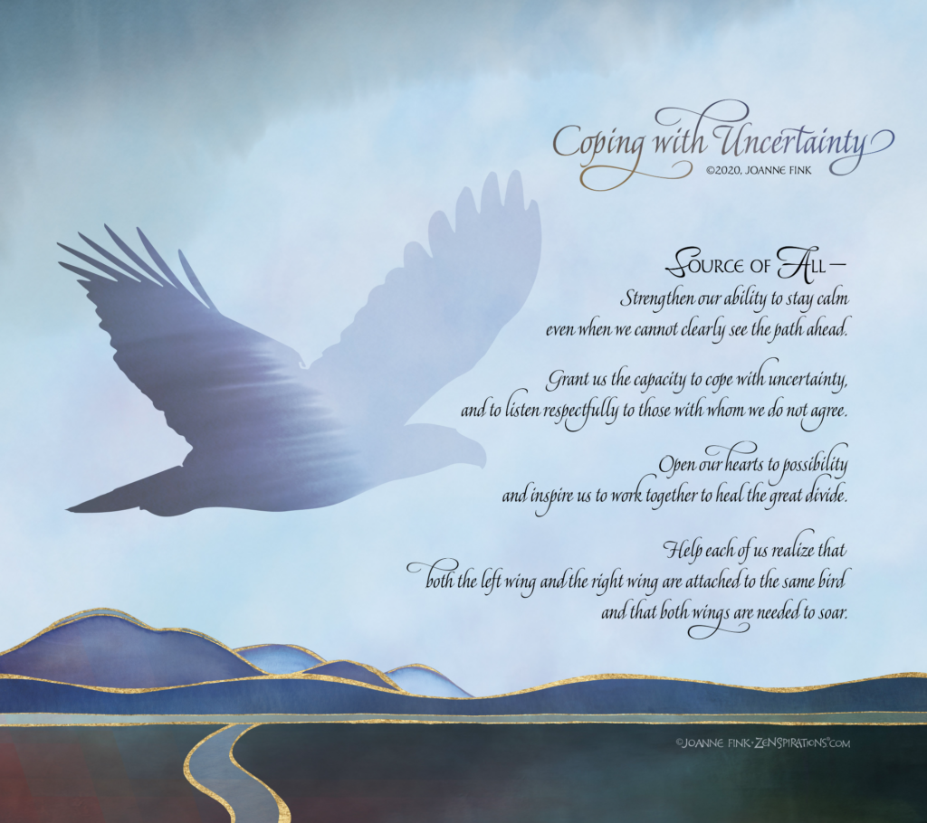 This week’s prayer, Coping with Uncertainty, was written as a gentle invitation to do just that: to remain centered even when the path ahead is unclear. To hold space for respectful disagreement. To remember that both the left wing and the right wing are part of the same sacred whole—and that we need one another in order to soar.