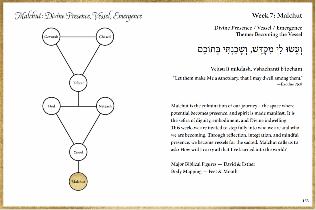 Malchut reminds us that we are not only vessels for Divine light—we are co-creators in how that light is shared. It is the culmination of all the other Sefirot, integrating love, strength, compassion, endurance, humility, and bonding into sacred presence.