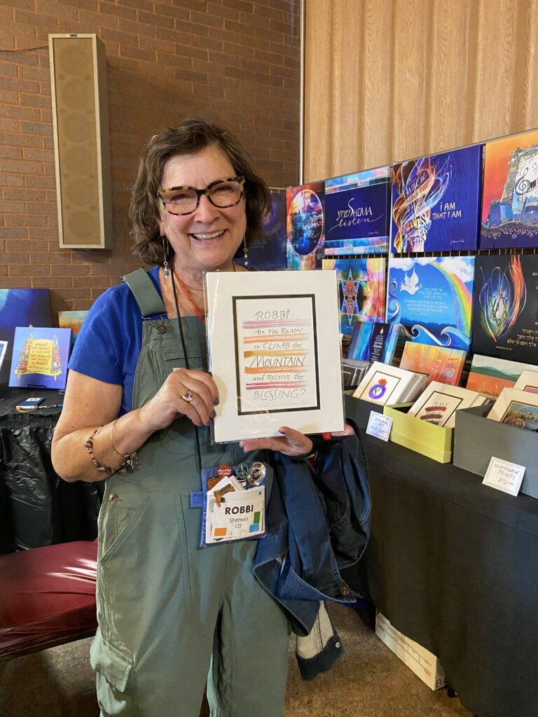 While I’m thinking about blessings (and about the Women Cantors Network conference which is this week!), I want to share a story about my friend Rabbi-Cantor Robbi Sherwin, who stopped by my booth at the 2023 WCN conference, and was drawn to this piece of art: