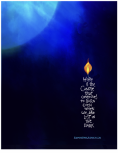 This week’s blog explores how to hold on to hope during uncertain times, how to let our inner light shine in the darkness, and how to draw strength from community. It includes a prayer for Israel, and my illustration and prayer for this week’s Torah portion, Shelach. I’ve also included an updated version of my 10 Tools for Challenging Times, with journaling prompts to help guide your own spiritual exploration.