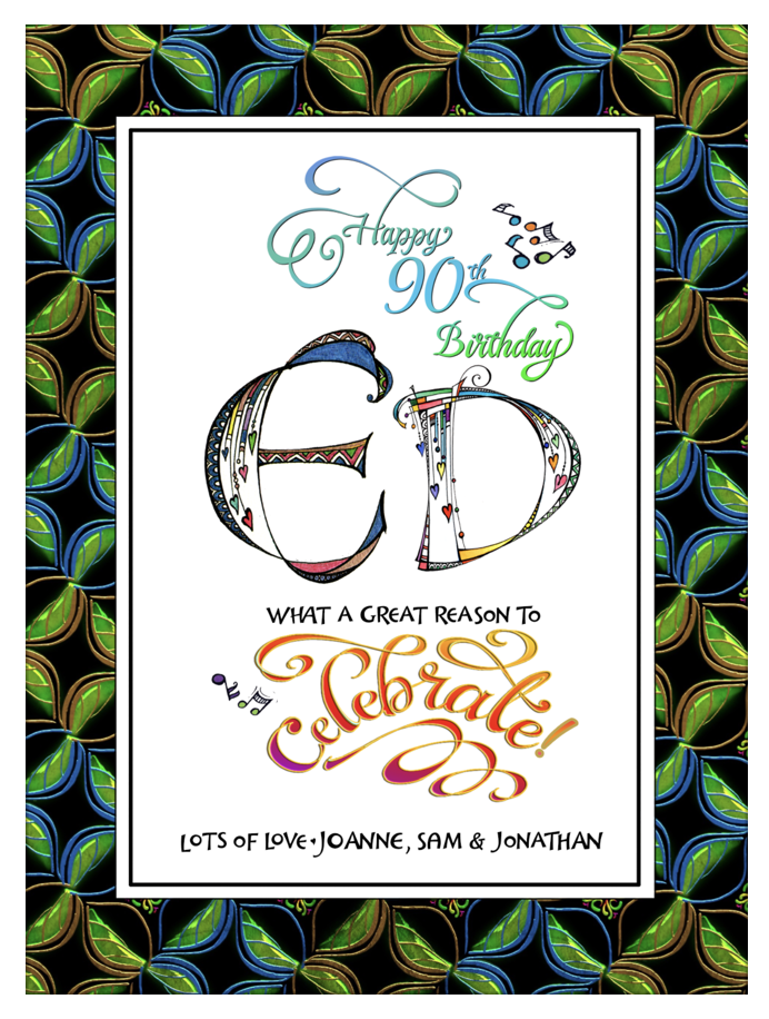 Personalized Lifecycle Designs Personalized Lifecycle Designs– What better way to celebrate someone’s special occasion than with a personalized design? Below are some of the many I’d done through the years. Baby B’nai Mitzvah Birthday Wedding & Anniversary Remembrances & Memorials