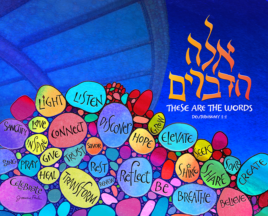 This calligraphic design is the forty-fourth of the 54 pieces in Joanne Fink’s Torah Illuminations series. This piece illustrates verse 1:1, from Parasha Devarim, the first Torah portion in the Book of Deuteronomy, “These are the words.”