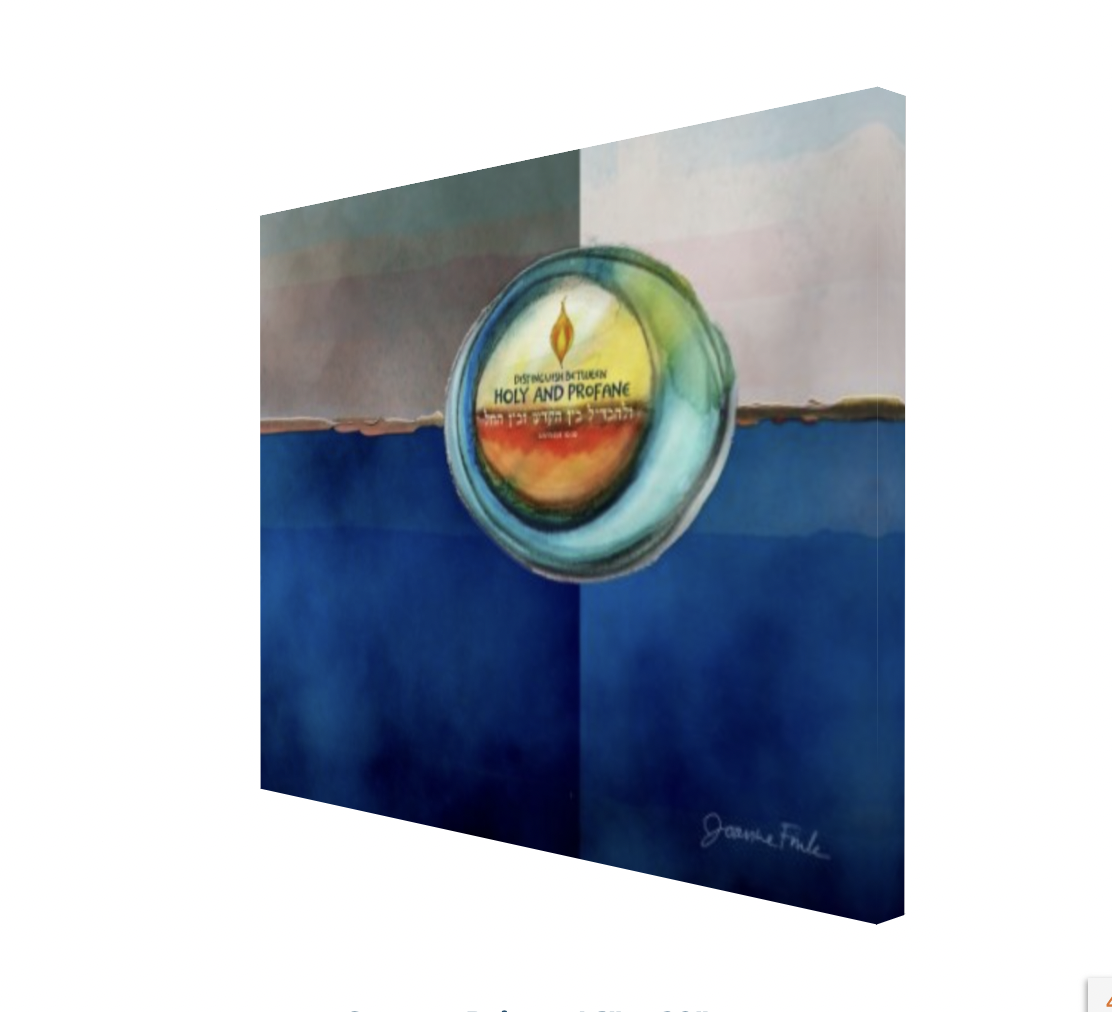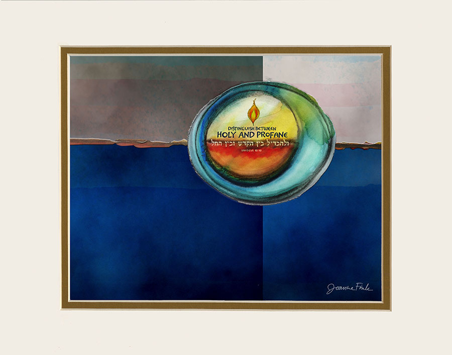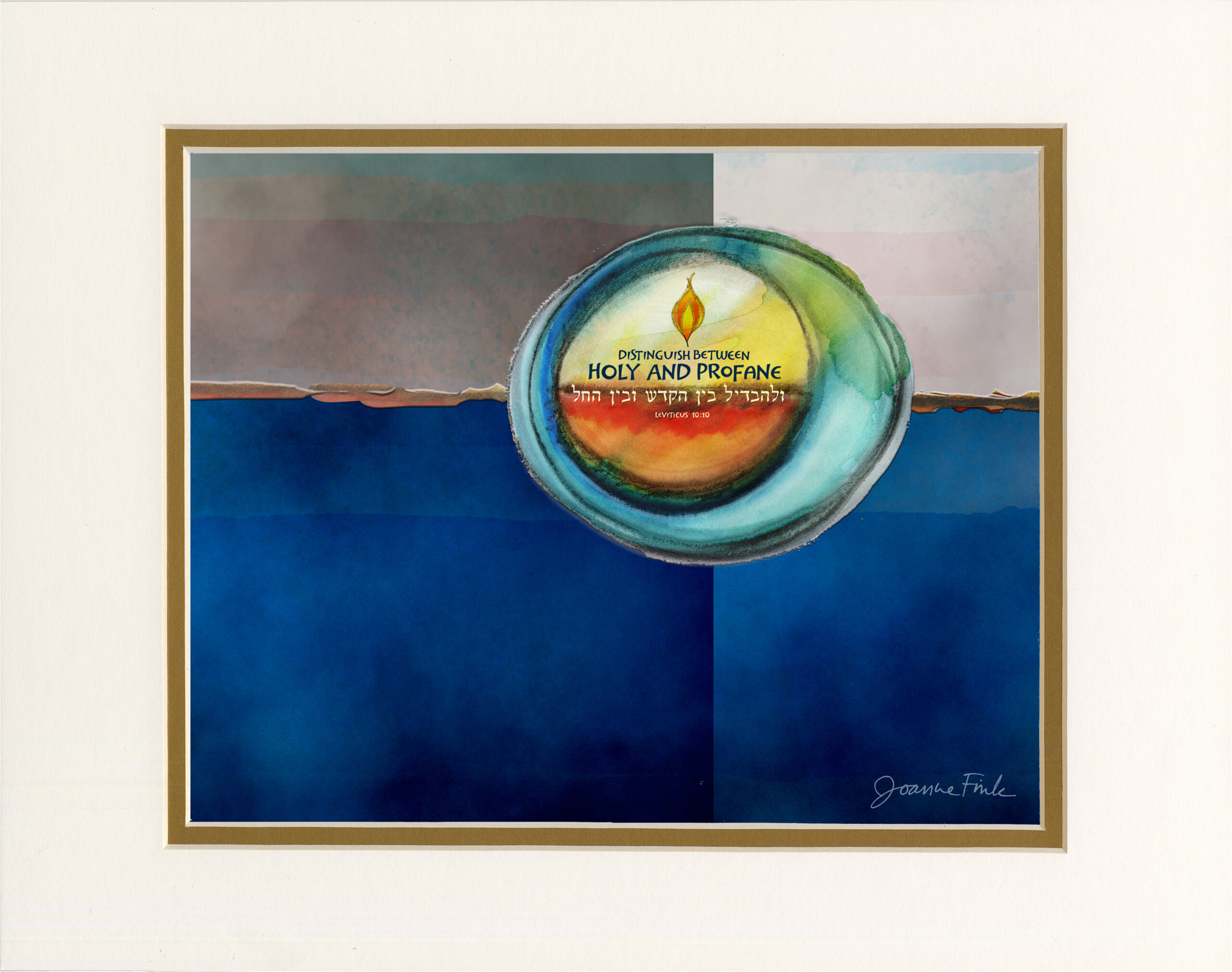 This Enso design is the twenty-sixth of the 54 pieces in Joanne Fink’s Torah Illuminations series. This piece illustrates verse 10:10, from Parasha Shemini, the third Torah portion in the Book of Leviticus, “Distinguish between holy and profane.”
