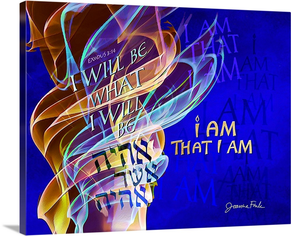 This dynamic design is the thirteenth of the 54 pieces in Joanne Fink’s Torah Illuminations series. This piece illustrates verse 3:14, from Parasha Shemot, the first Torah portion in the Book of Exodus, “I am that I am.”